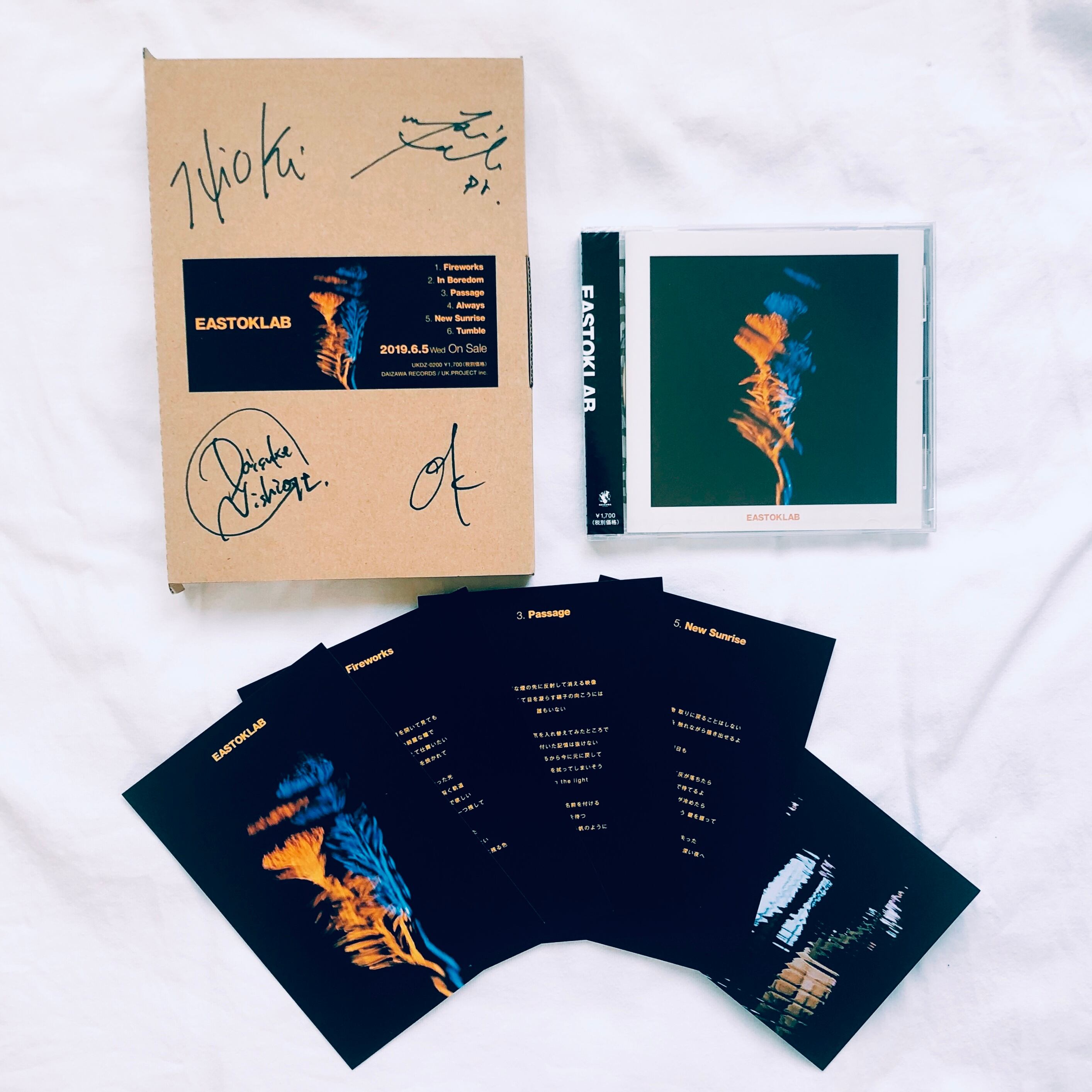 EASTOKLABの1st Mini Album『EASTOKLAB』のメンバーサイン入り特別パッケージバージョンです。 ※サイン入りパッケージはオンラインショップ限定販売になります。 -収録曲- 1. Fireworks 2. In Boredom 3. Passage 4. Always 5. New Sunrise 6. Tumble ※ 送料は¥200となります(単品購入時)